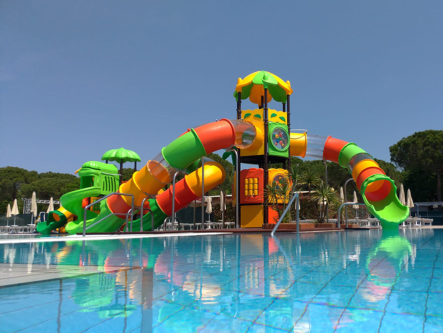 Spiaggia privata, piscine con scivoli e giochi d'acqua, campi sportivi, animazione, ottima cucina e molto altro per la tua vacanza indimenticabile a due passi da Venezia!